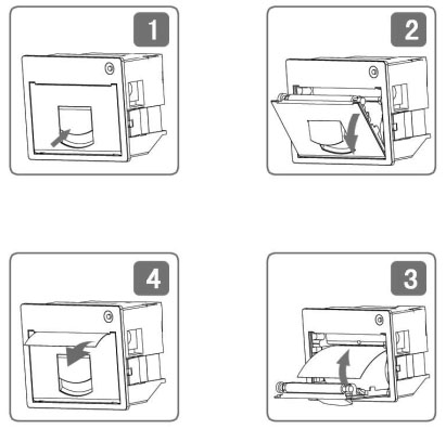 d)合上紙倉蓋,打印頭走紙軸壓齊打印紙后稍用力把打印頭走紙軸壓回打印頭,并把旋轉