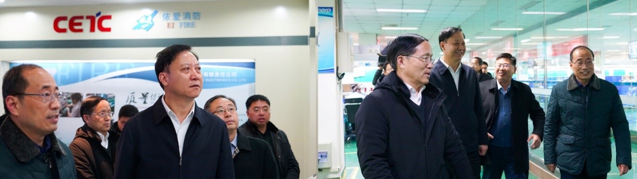 2021年1月12日,蚌埠市委書(shū)記黃曉武,市委副書(shū)記曹哨兵,市委常委、副市長(cháng)鄭東濤,市委常委、市委秘書(shū)長(cháng)高尚,副市長(cháng)陳忠衛,高新區管委會(huì )主任湯春義等領(lǐng)導一行蒞臨依愛(ài)消防調研考察。電科思儀黨委書(shū)記、董事長(cháng)張紅衛,電科思儀監事會(huì )主席魯紹務(wù),40/41所副所長(cháng)王健,電科思儀副總經(jīng)理石險峰,依愛(ài)消防副總經(jīng)理單夫來(lái)等領(lǐng)導熱情的接待了來(lái)賓一行。