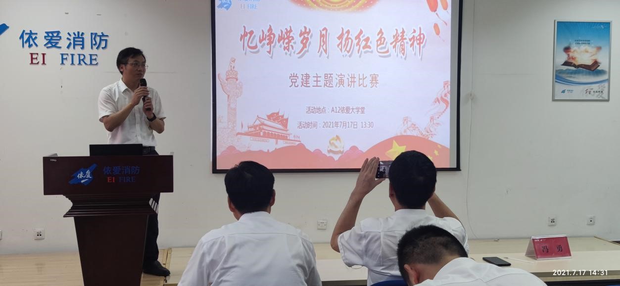 為慶祝中國共產(chǎn)黨建黨100周年,號召員工繼承和發(fā)揚革命前輩不怕苦不怕累的奉獻精神,并將其應用于研發(fā)工作中,2021年7月17日,消防公司研發(fā)部在A12依愛(ài)大學(xué)堂成功舉辦“憶崢嶸歲月,揚紅色精神”黨建主題演講比賽,研發(fā)部全員參與活動(dòng),公司總工程師馮勇、質(zhì)安部部長(cháng)孫峻嶺、人力資源部部長(cháng)范旭東、綜合管理部高級專(zhuān)務(wù)李鵬、研發(fā)部副部長(cháng)張廣標擔任評委。